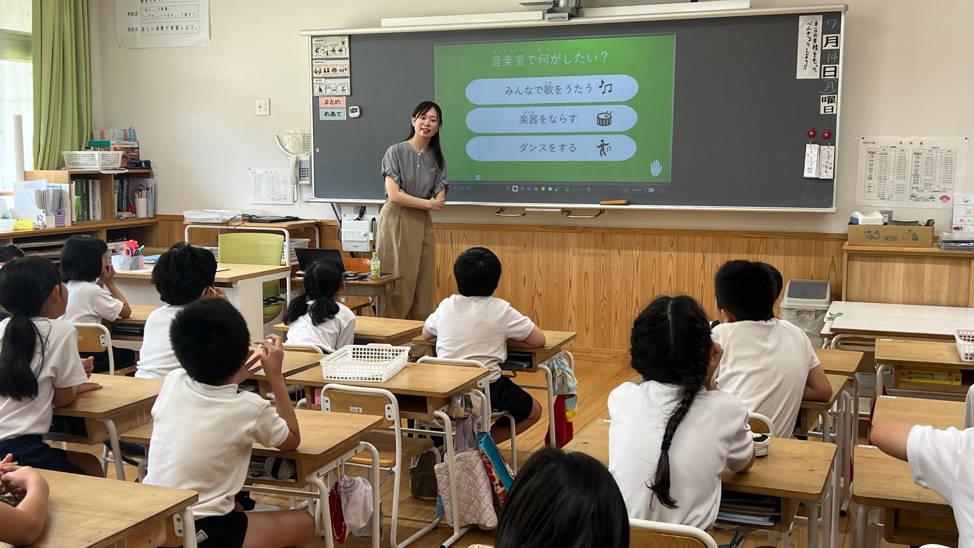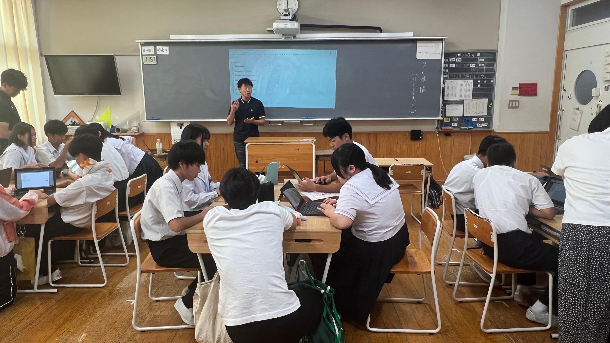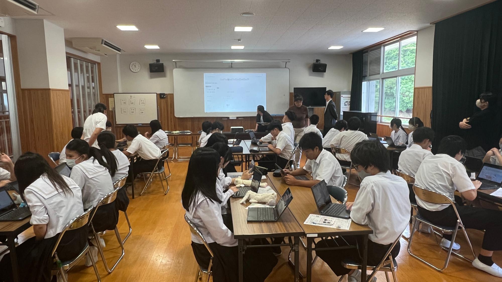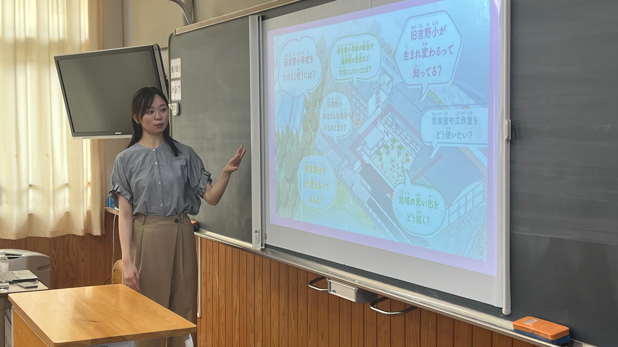 令和7年7月14日(月曜日)吉野さくら学園の小学4年生から中学3年生を対象に株式会社奥村組による旧吉野小学校の跡地活用に関する説明会とワークショップを開催しました。旧吉野小学校利活用プロジェクトの概要を伝え、子どもたち一人ひとりが「思い出」や「これからの活用」について考える機会を持つこと。そして、その貴重な声を将来の計画に活かすことを目的に行いました。今後も子どもたちの意見はオンラインプラットフォーム子ども版吉野町Liqlid「よしののみんなのこえ」を活用し収集します。