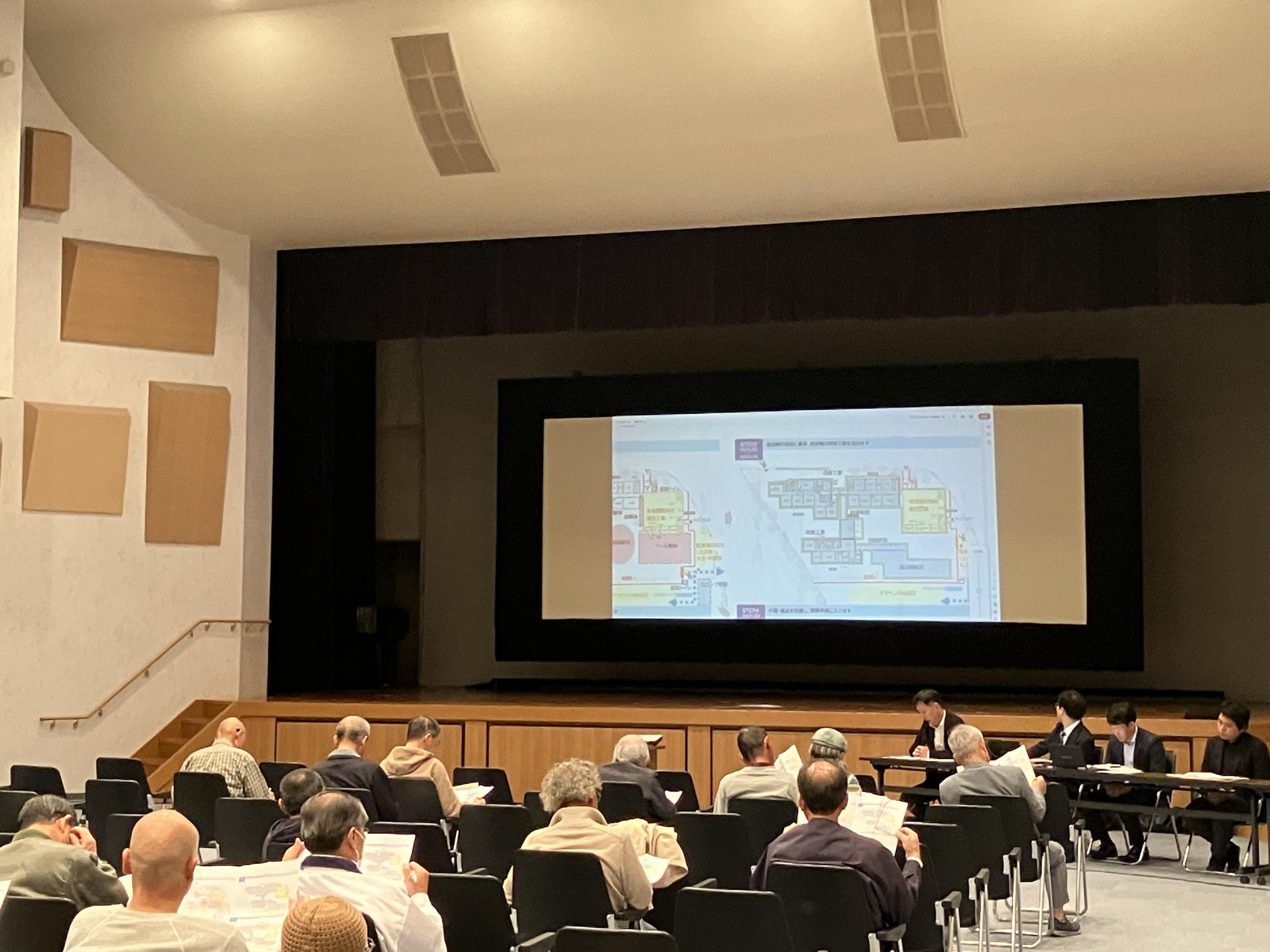 株式会社奥村組との事業契約締結を11月に予定しており、締結後、改修・新築工事着工予定である為、上市地区・吉野地区の代表者様にご出席いただき〈事業進捗〉〈工事概要〉〈建築概要〉〈安全対策〉〈工事工程〉について株式会社奥村組より説明いただきました。